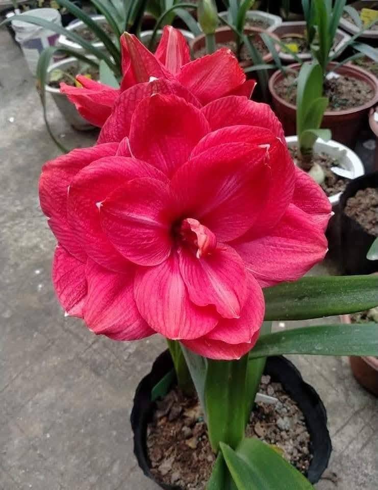 The ‘Diva‘ (or ‘Grand Diva’) Amaryllis is a premium cultivar of Hippeastrum, celebrated for producing massive, velvety, deep burgundy-red flowers. These bulbs are popular for holiday, indoor, and container gardening due to their dramatic, large trumpet-shaped blooms, which can measure 10–15 cm in diameter. They are known for being low-maintenance, requiring little more than sunlight and sparse watering to produce their signature, deep red, silk-like flowers.